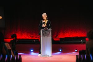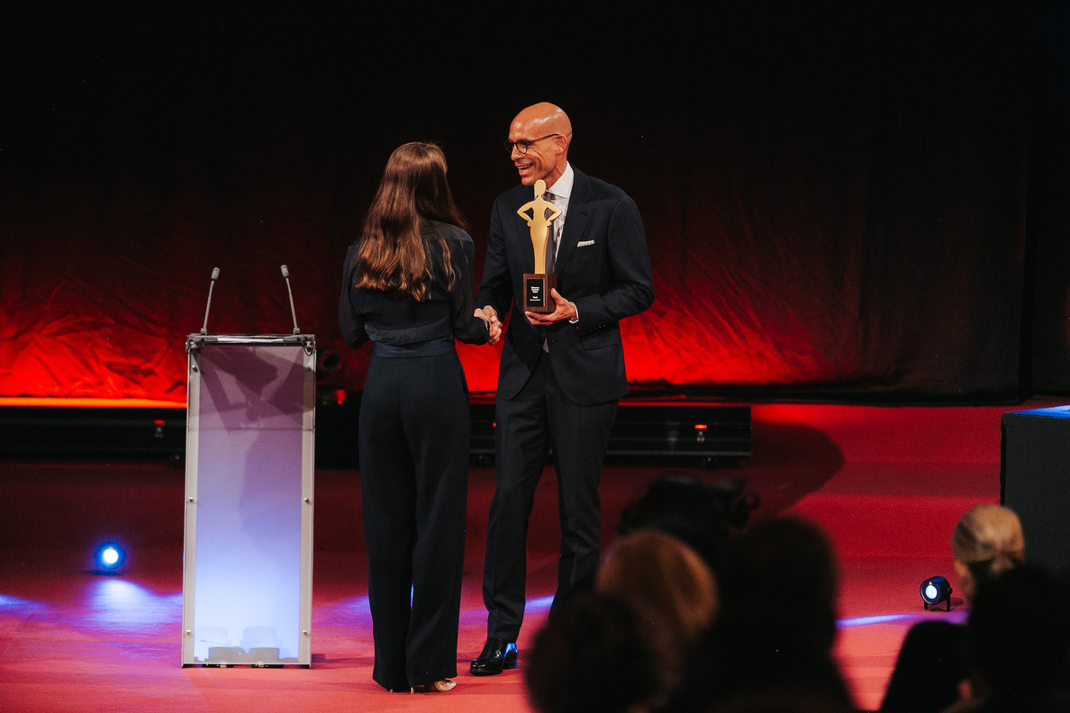 Der „Prix Courage“, der von der Sheconomy-Redaktion verliehen wird, geht an „Nussyy“-Gründerin Carina Rahimi. Die Laudatio auf sie wurde vom Aufsichtsratsvorsitzenden von SPAR Dr. Gerhard Drexel gehalten und ihre Mentorin Jane Goodall war mit einer Videobotschaft präsent.