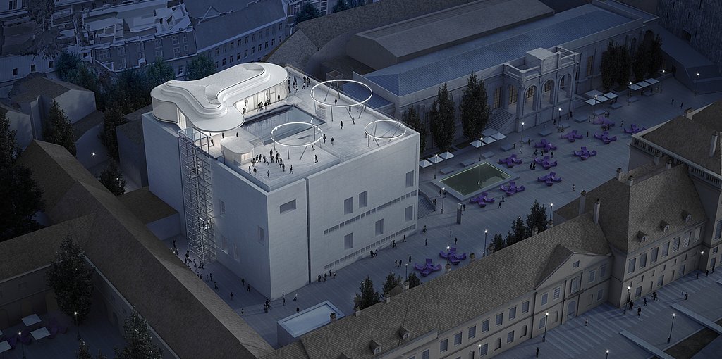 Nach mehreren Verschiebungen wird die »Libelle«, eine Kultur- und Veranstaltungsterrasse auf dem Dach des Leopold Museums, nun eröffnet. Es ist die erste große Erweiterung auf dem Areal des Wiener Museumsquartiers seit seiner Eröffnung im Jahr 2001. Geplant wurde der Aufbau, der neben einer frei zugänglichen Terrasse auch einen Veranstaltungsraum bietet, von den beiden Architekten Laurids und Manfred Ortner. Ein Lift bringt die Terrassenbesucher*innen direkt auf das 25 Meter über dem Straßenniveau liegende Areal, das vor allem konsumfrei genutzt werden soll. Rund 7,5 Millionen Euro wurde in die Erweiterung gesteckt.