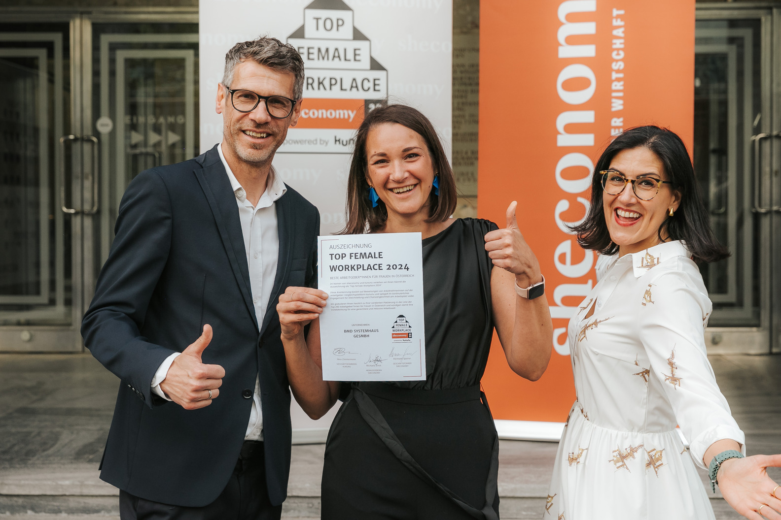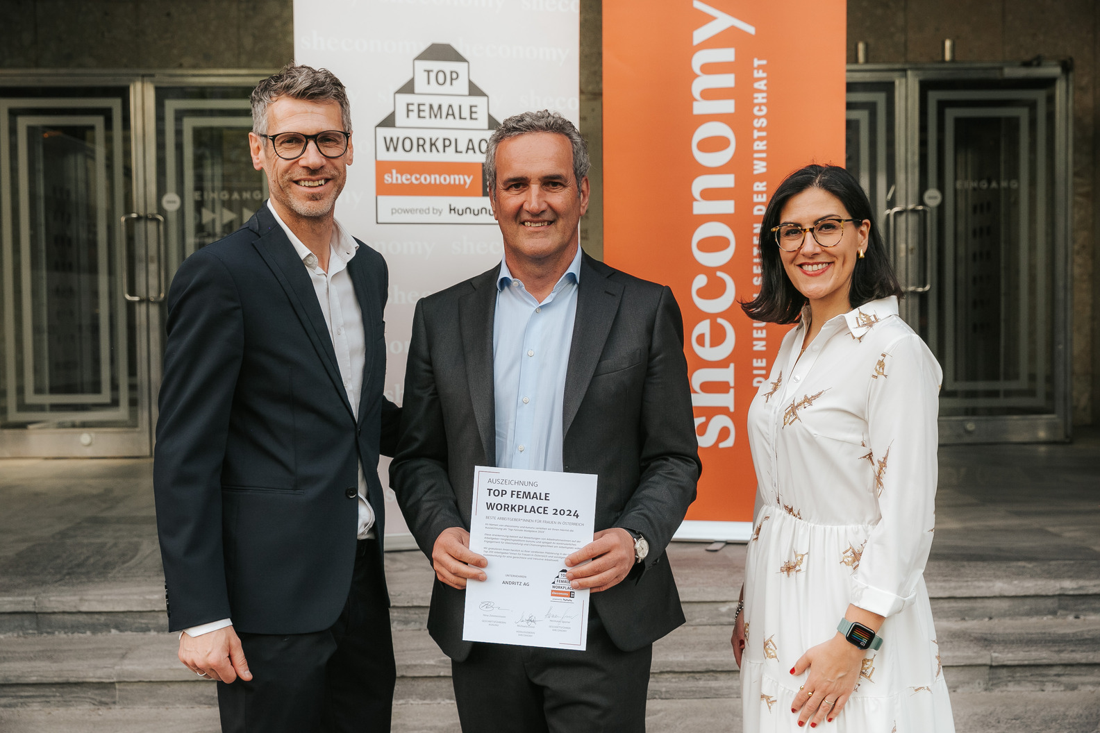 Gemeinsam mit Yania Zaba, VP Global Communications & Brand bei kununu, und sheconomy Chefredakteurin Michaela Ernst durfte er bereits die ersten Top-Female-Workplace Urkunden an ein paar vorbildliche Arbeitgeber*innen übergeben.