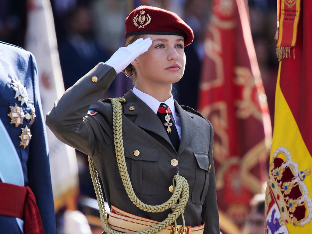 Anfang Oktober leiste sie den militärischen Fahneneid und schwor, wenn nötig, ihr Leben für Spanien im Kampf zu geben. Leonor ist klar, dass sie sich die Achtung des spanischen Volks erst noch erkämpfen muss. Der harte Militärdienst ist ein wichtiger Meilenstein auf diesem Weg. „Ich weiß, wie sehr die Spanier unsere Streitkräfte schätzen. Ich bin mir meiner Pflichten und Verantwortung bewusst“, sagte sie.