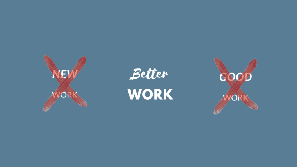 Bergmanns Idee der Handlungs- und Entscheidungsfreiheit wird im Besser lebendig. Für mich ist Besser damit der Raum der Möglichkeiten, der den Weg zu einem (Achtung!) Neu ebnet. Der Unterschied besteht jedoch darin, vielmehr auf dem Weg und damit im Spiel bleiben zu wollen, als anzukommen. Hier schimmert Simon Sineks The Infinite Game durch; aber das ist etwas für einen anderen Artikel. Ob New, Good oder Better, letztendlich gilt bei allen dreien: wenn die Haltung nicht stimmt, klappt’s auch nicht mit dem Anderen. Was denkst du? Ist Better Work eine hilfreiche Bezeichnung oder Semantik?