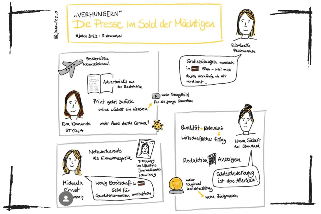 Unter dem Motto „Verlottern? Verteufeln? Verhungern? Qualitätsjournalismus unter Druck!“ fand am 9. November 2022 der 24. Journalistinnenkongress statt. In einer der Diskussionsrunden ging es um das Thema „Qualitätsmedien und der Umgang mit Inseraten“. Wie können sich Qualitätsmedien finanzieren, um ihre Unabhängigkeit zu erhalten? Darüber diskutierten Eva Komarek, General Editor der Trend Topics der Styria Media … Continued